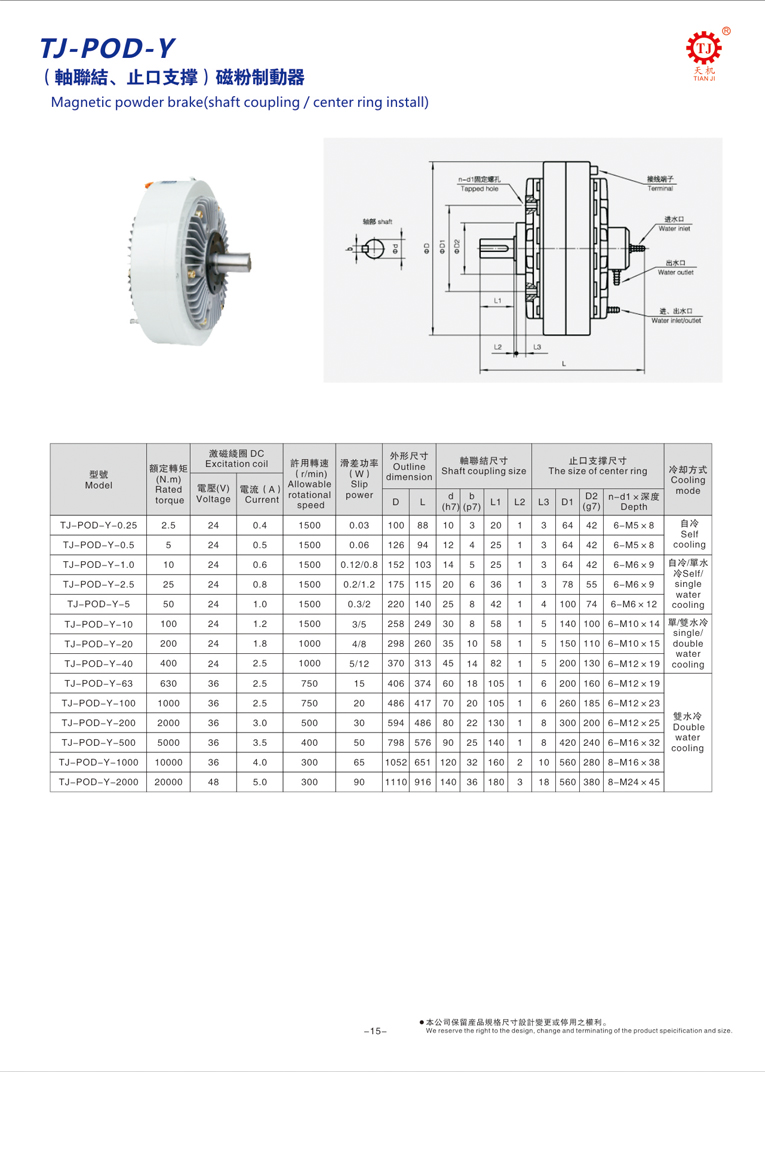 東莞天機傳動(臺灣天機牌)水冷磁粉剎車器和風(fēng)冷磁粉制動器都是工業(yè)制動器中的一種,使用的DC24V直流電壓,操作更加安全,使用簡單,維護容易。