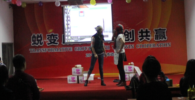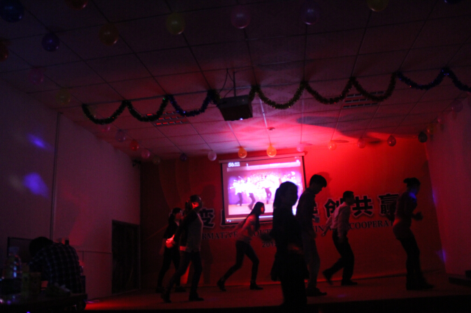 晚會中精彩節(jié)目不斷綻放,特約嘉賓書法大師陳老師給我們剖析《西游記》精彩判斷,個個聽的聚精會神;帥哥們的演唱呼聲一片一片的;美女帥哥們精心準(zhǔn)備的舞蹈拉動著大家的熱情;一個《賣蘋果》小品將大家的熱情帶到了高潮,笑聲、掌聲不斷;游戲環(huán)節(jié)生產(chǎn)和辦公室進(jìn)行了互動,同志們的熱情不減;國際友人過年,當(dāng)然是少不了我們外貿(mào)部的同事獻(xiàn)上的英文歌曲......
