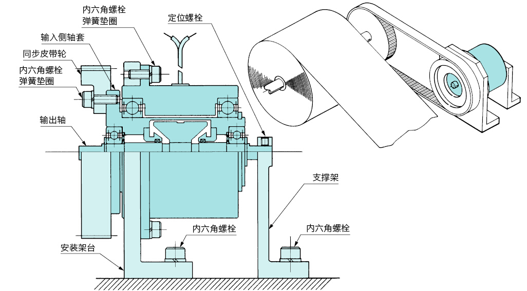 2、請將高速旋轉(zhuǎn)端作為輸入端的標(biāo)準(zhǔn)安裝狀態(tài)下使用磁粉離合器,離合器和制動器的軸請務(wù)必水平安裝。